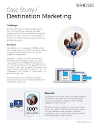 Explore how Bridge helped a major destination marketing company build custom audiences and deliver Facebook campaigns to double their average engagement rate.[/two_thirds]