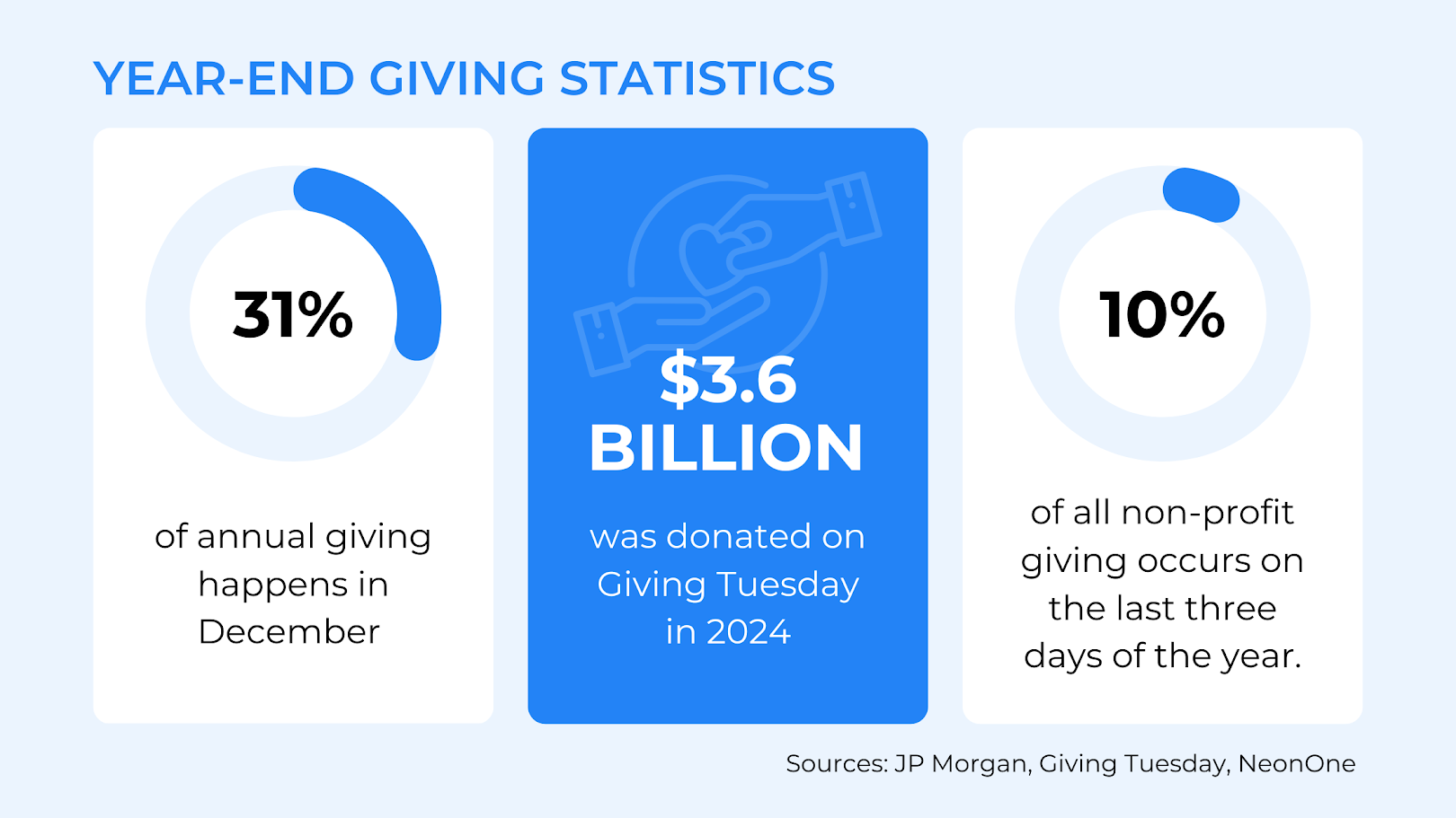 - Promote Year-End Benefits: Highlight the practical side of giving, such as tax deductions or employer donation matching. Pair these incentives with countdown messaging to create urgency.